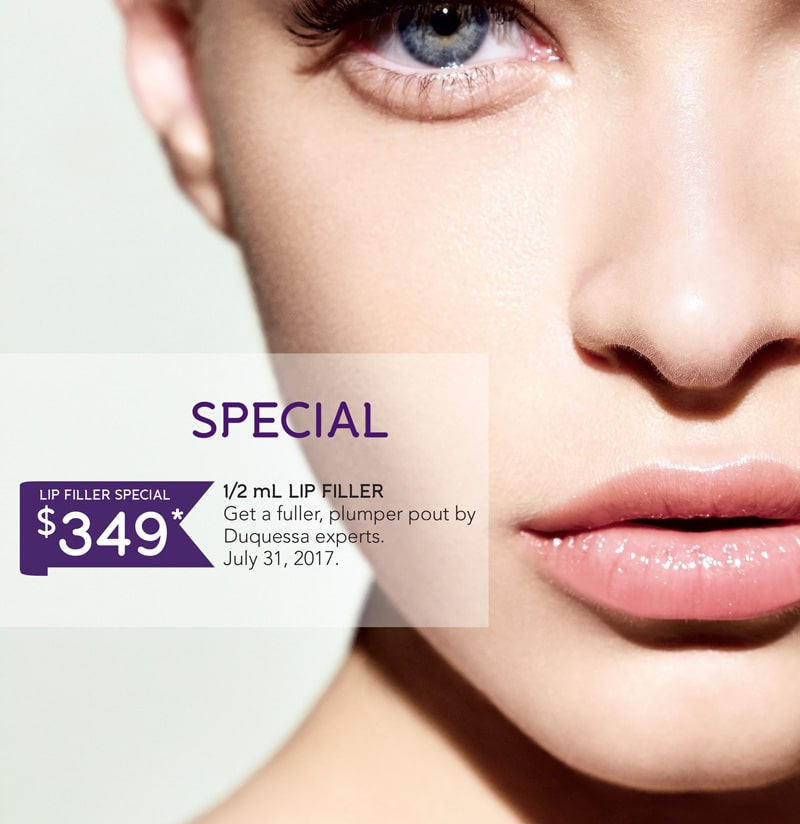 [vc_row][vc_column width="1/2"][vc_column_text]Lip Fillers are our latest special offers for Duquessa. Get 1/2 a mL of Lip Filler for only $349. Your lips will be plumper, poutier and ready for a READ MORE